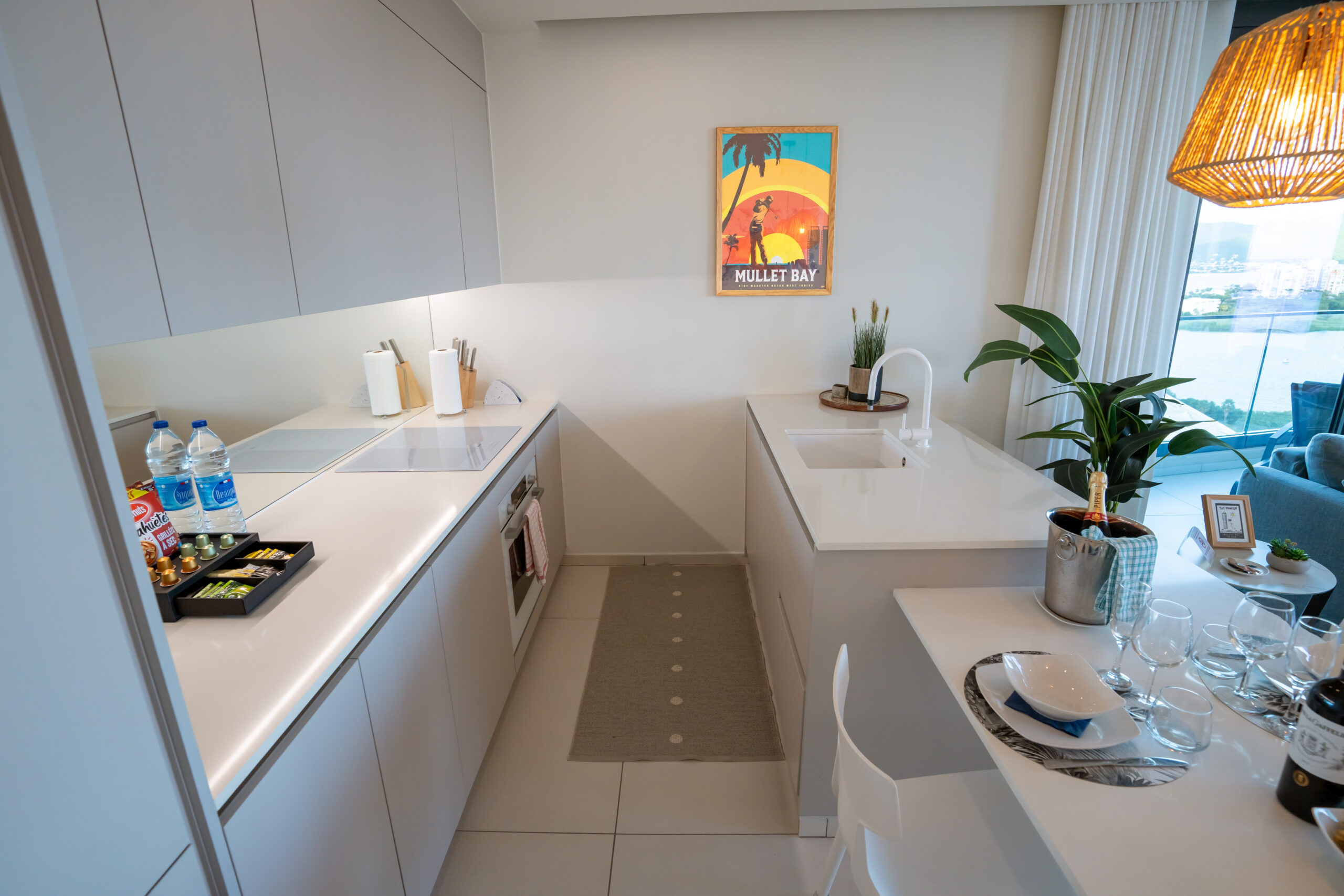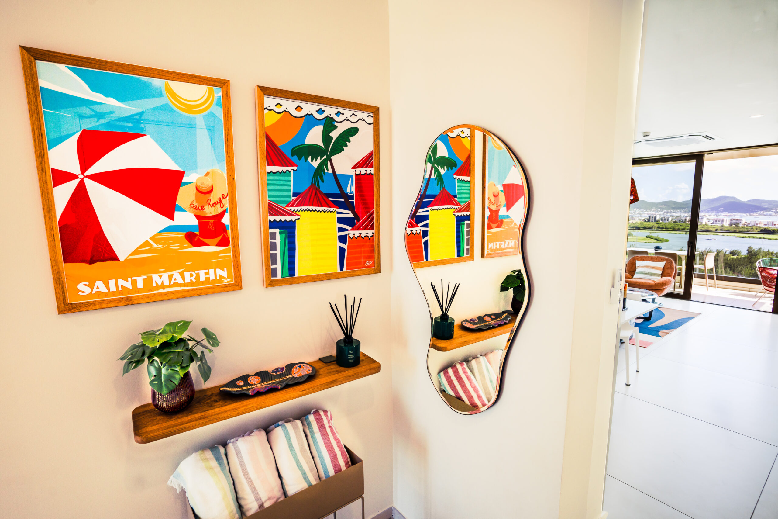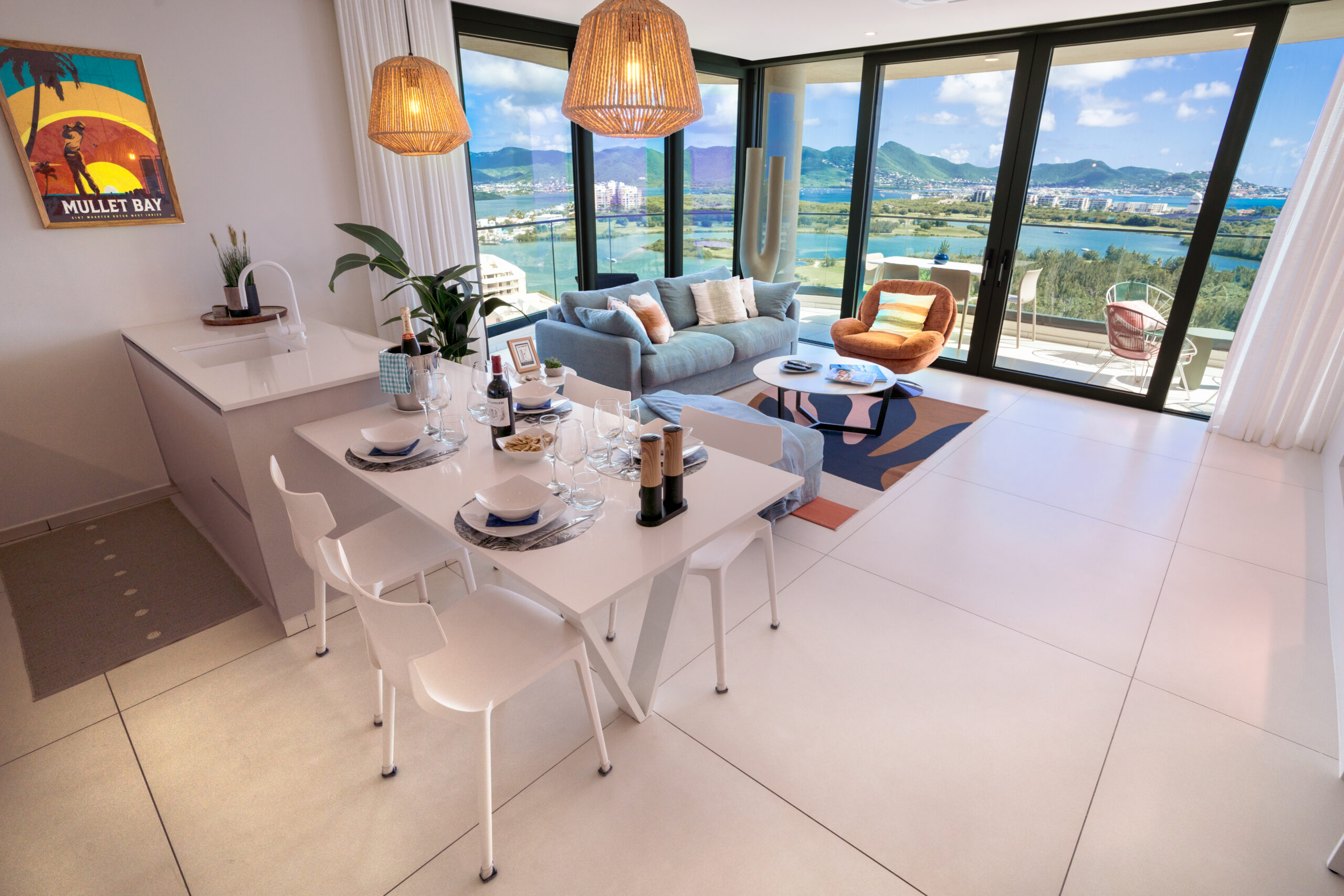Chaque élément de ce condo a été méticuleusement conçu pour surpasser vos attentes. Les fenêtres du sol au plafond offrent des vues panoramiques à couper le souffle, visibles depuis le salon et les deux chambres. Meublée de fond en comble avec des pièces de grande qualité et des œuvres d’art locales uniques, dont l’incroyable « Neon Octopus » de Tess, une artiste de Saint-Martin, cette maison est un véritable joyau tropical moderne.