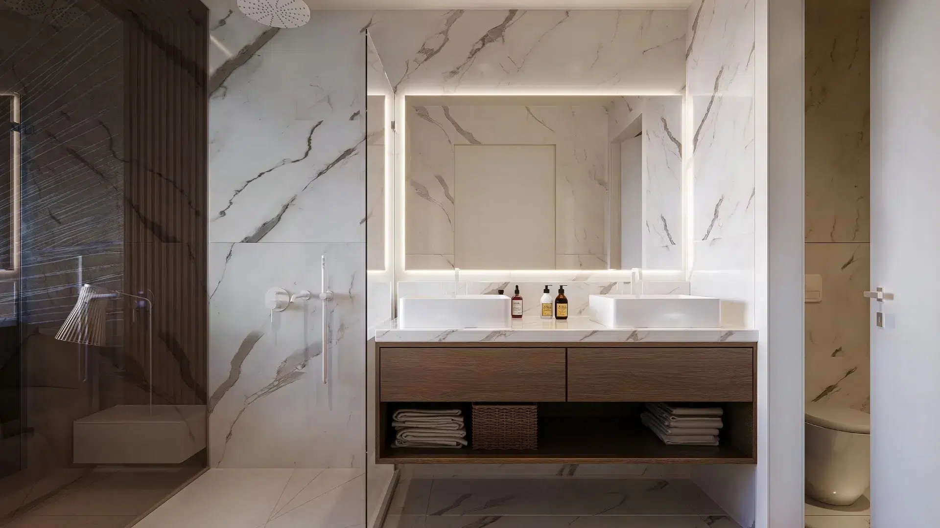 Salle de bain moderne avec des finitions élégantes et raffinées.