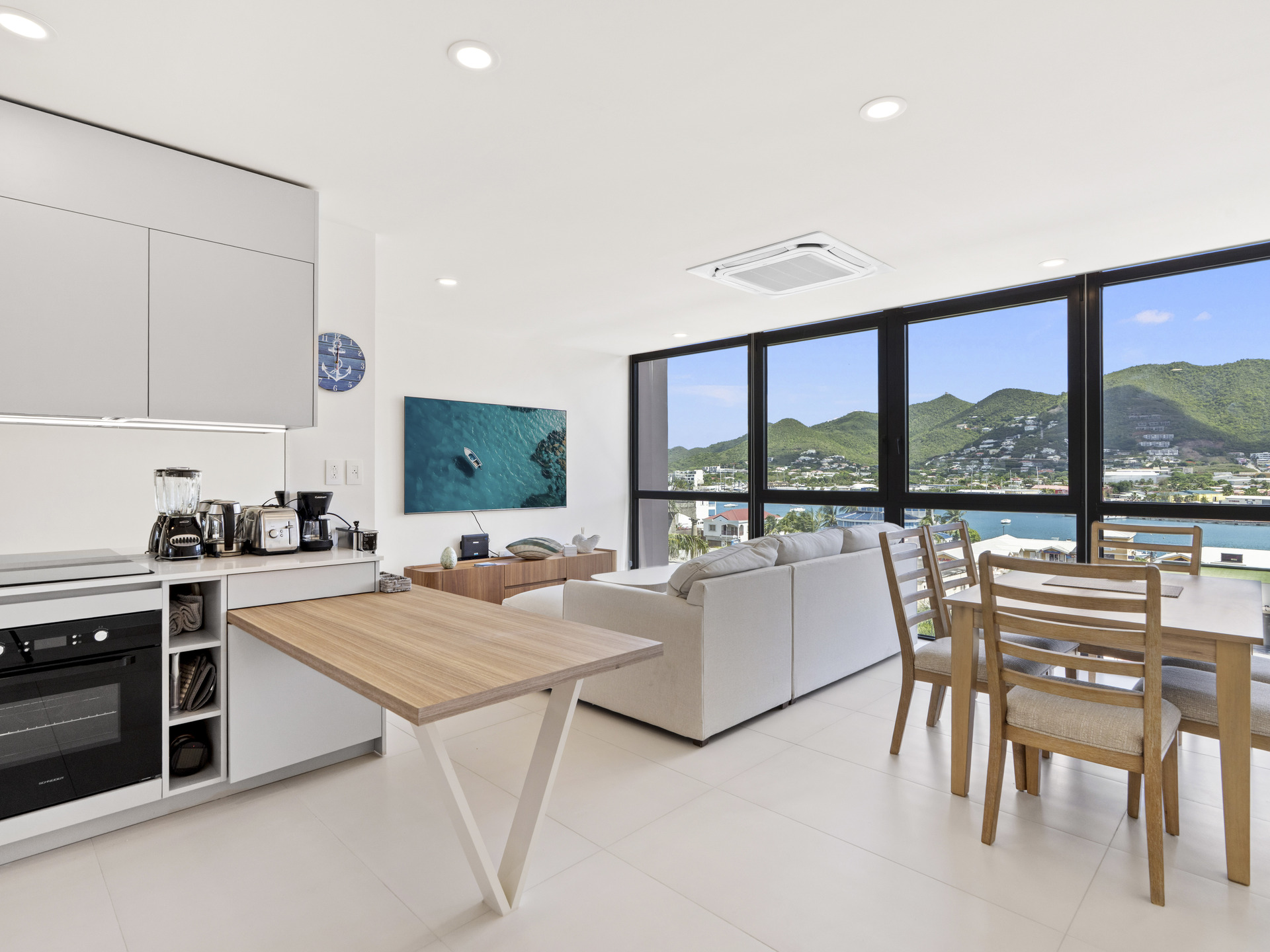 Nous sommes heureux de vous présenter l’Appartement A‑117, un logement confortable de deux chambres situé au premier étage de The Hills Residence à Simpson Bay. Avec ses 75 m² habitables et sa baie vitrée offrant une vue imprenable sur le lagon, cet appartement est idéal pour votre séjour à Sint Maarten.