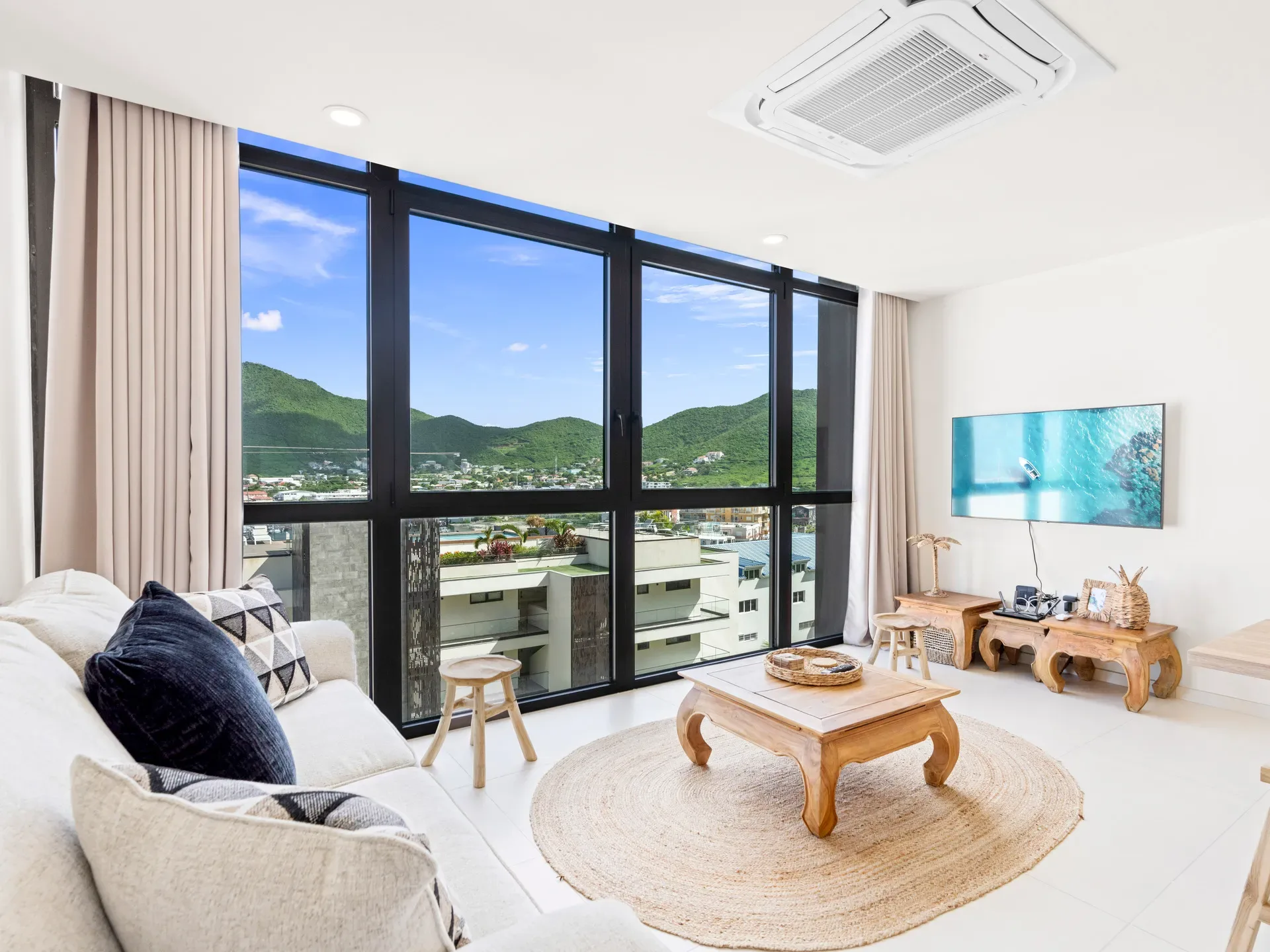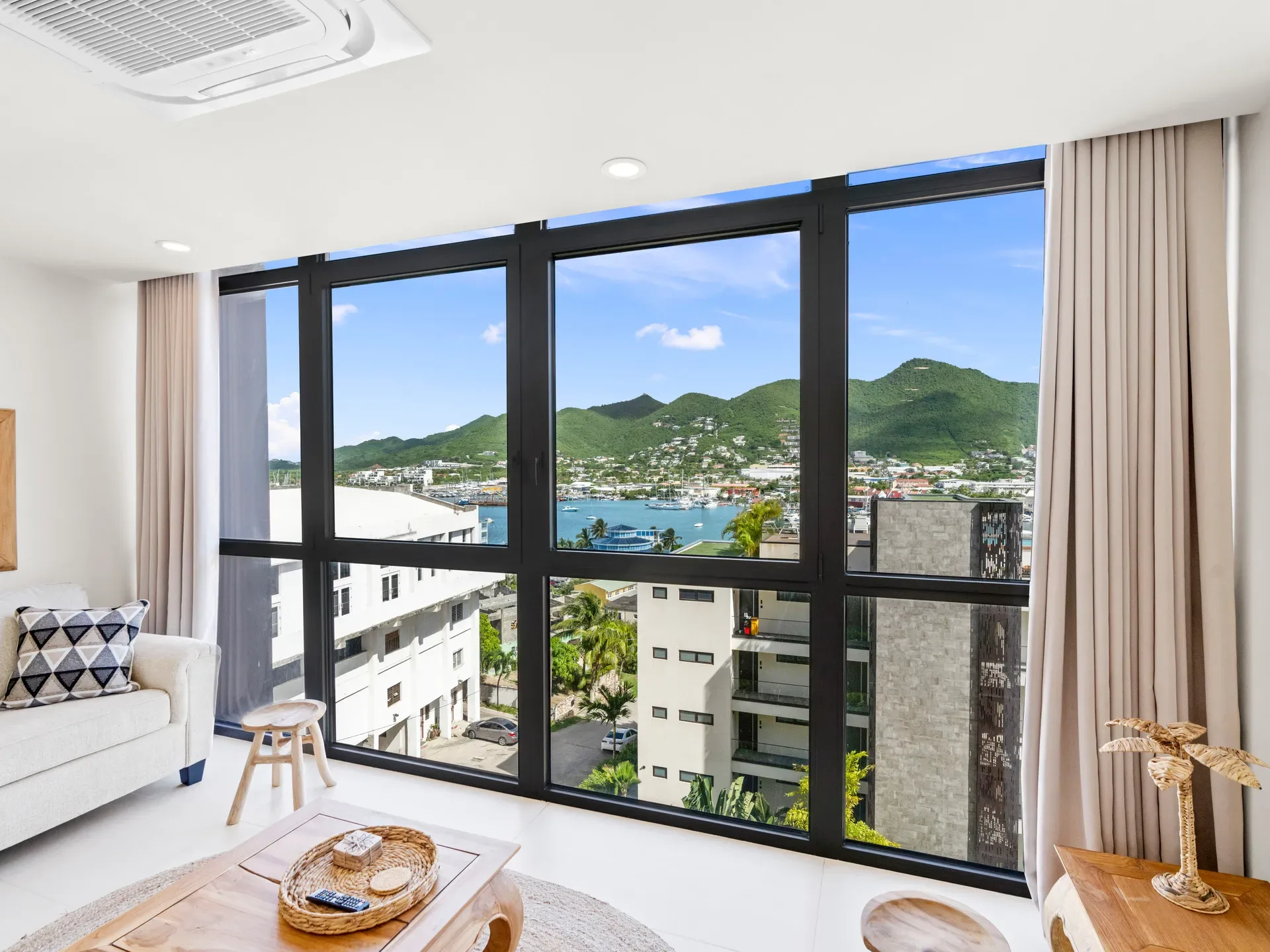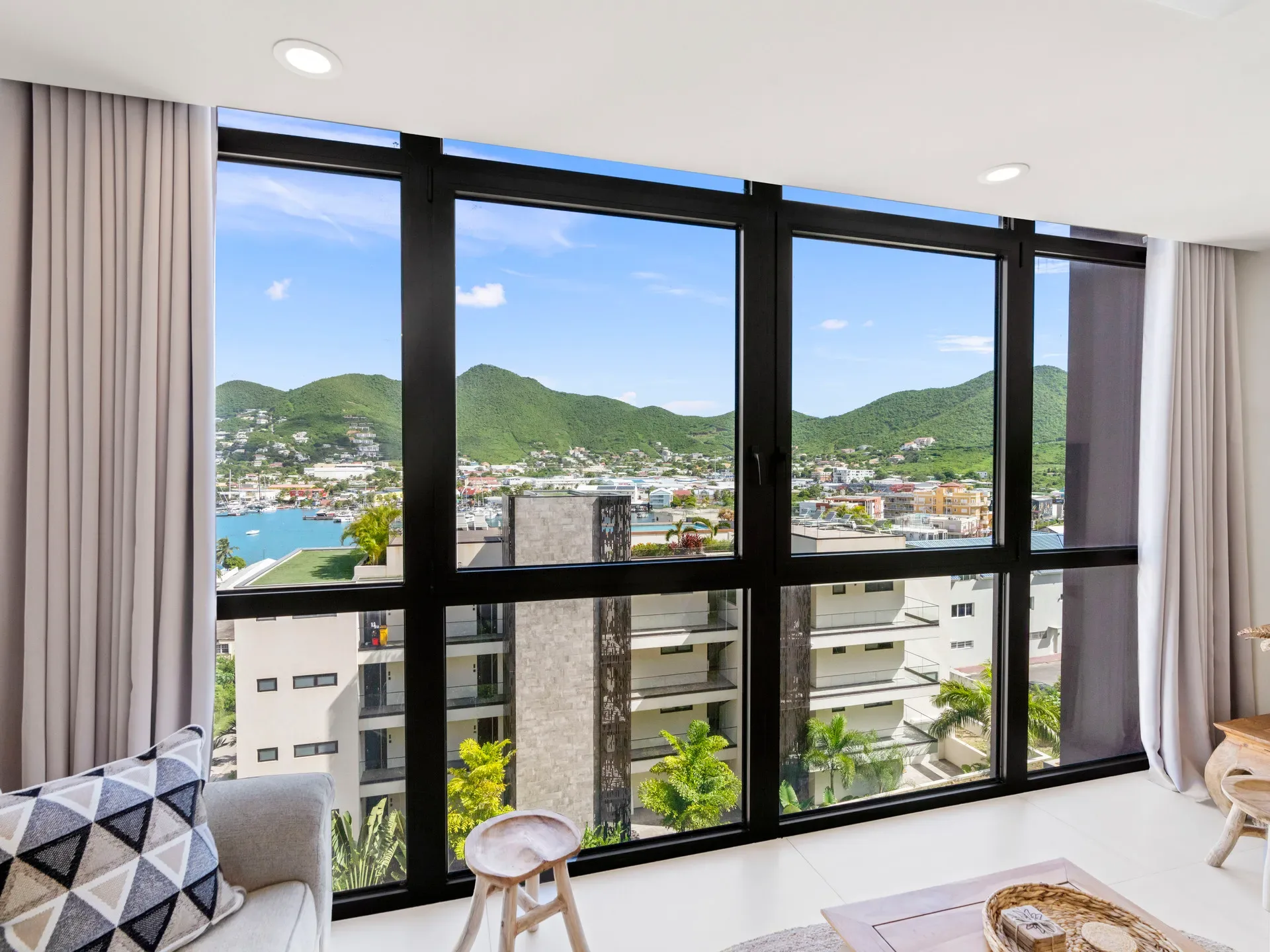 Bienvenue à l’Appartement B-225 à The Hills Residence à Simpson Bay, Sint Maarten — votre élégant appartement d’une chambre avec mur de verre offrant une vue spectaculaire sur la lagune. Situé au deuxième étage, cet appartement de 55 m² combine confort, sophistication et tranquillité pour un séjour inoubliable.