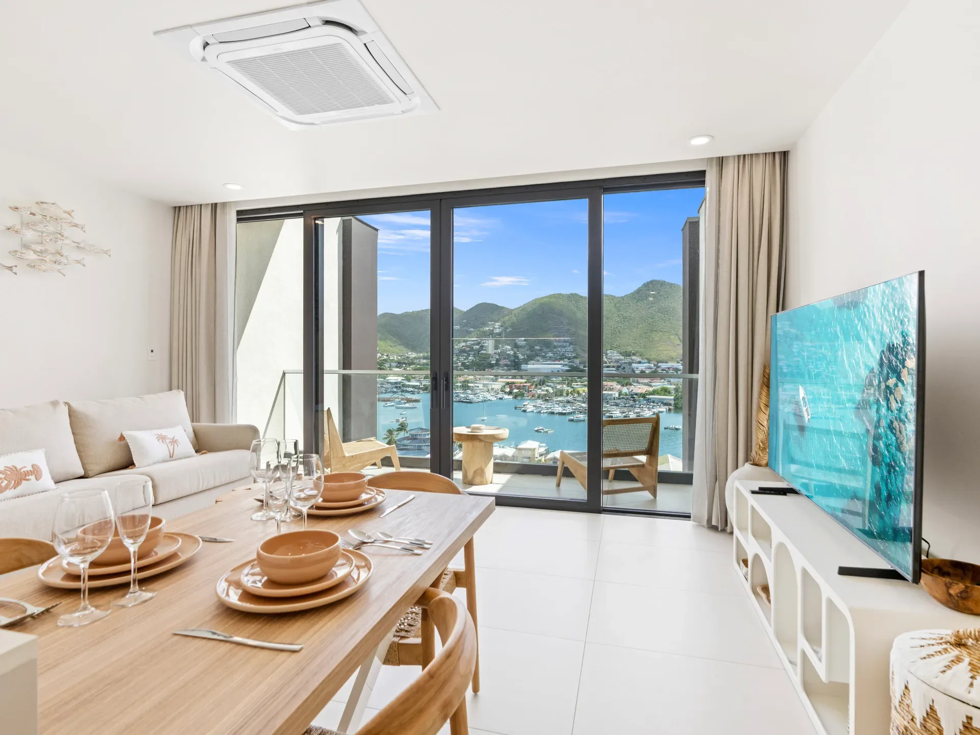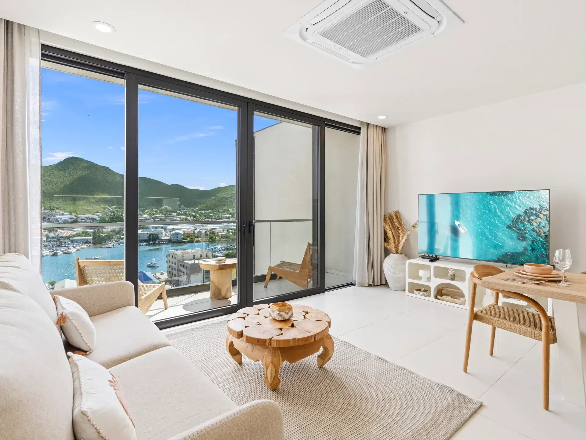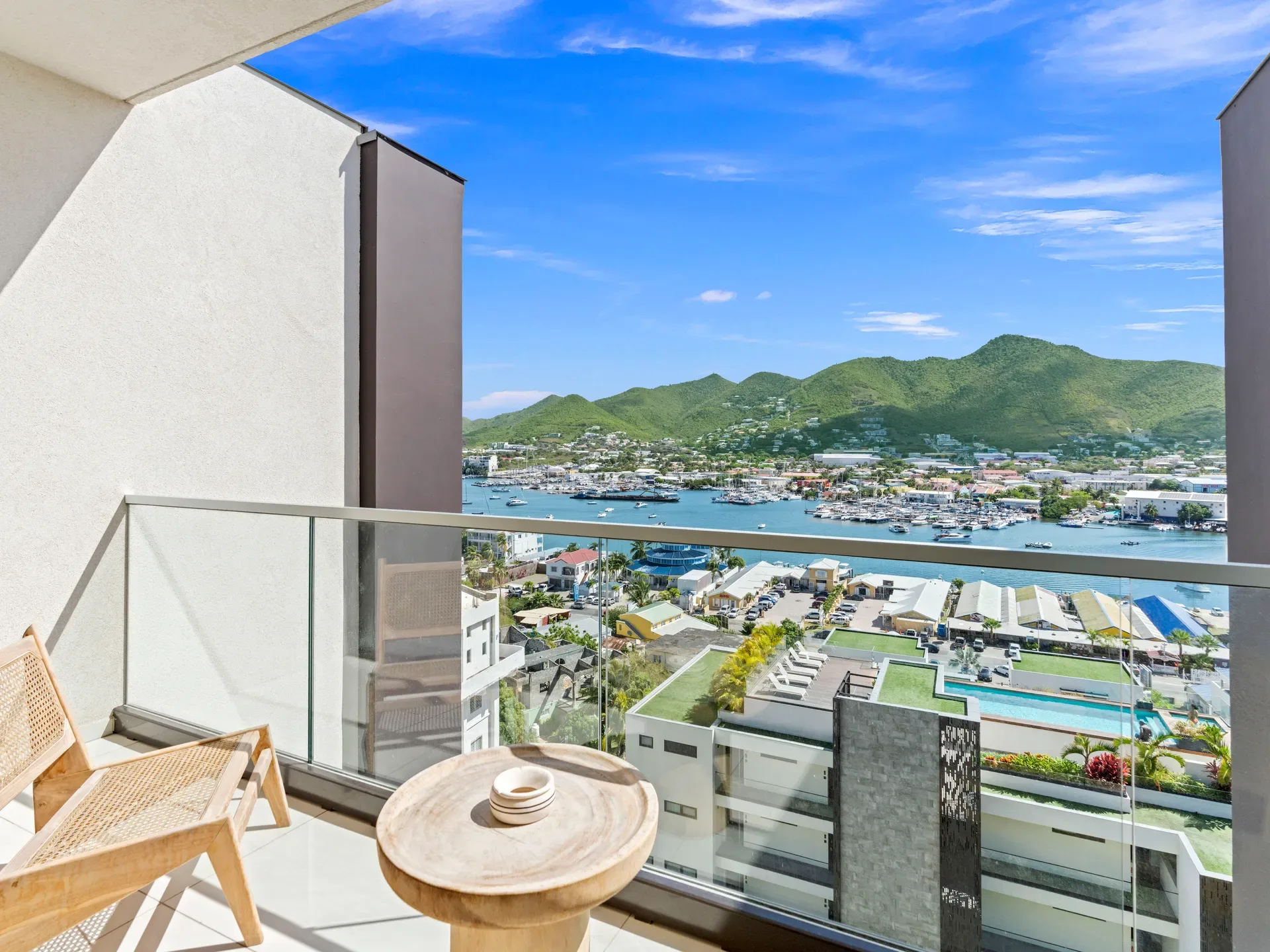 Bienvenue dans ce superbe appartement d’une chambre avec balcon au The Hills Residence à Simpson Bay, Sint Maarten ! Situé au 5e étage, en entrant, vous découvrirez un appartement chaleureux et soigneusement conçu pour offrir confort et commodité
