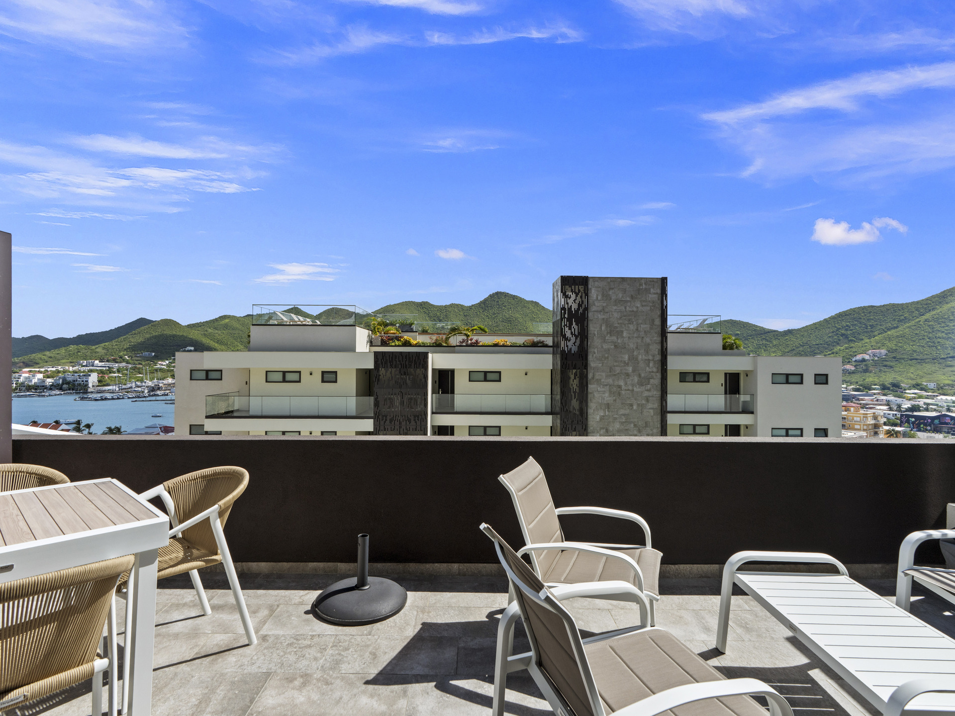 Découvrez cette superbe suite d’angle de deux chambres et deux salles de bain, parfaitement conçue pour allier confort moderne et élégance naturelle. Située au rez-de-chaussée du bâtiment 3, cette résidence offre un accès facile tout en offrant une vue panoramique imprenable sur l’océan, Anguilla, le lagon et les montagnes verdoyantes environnantes.