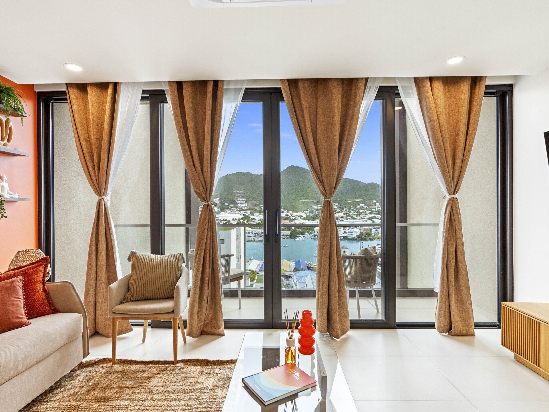 Alliant design contemporain, confort absolu et vue exceptionnelle sur le lagon, cet appartement est le choix parfait pour les couples ou les voyageurs à la recherche d’un séjour paisible et élégant à Sint Maarten.