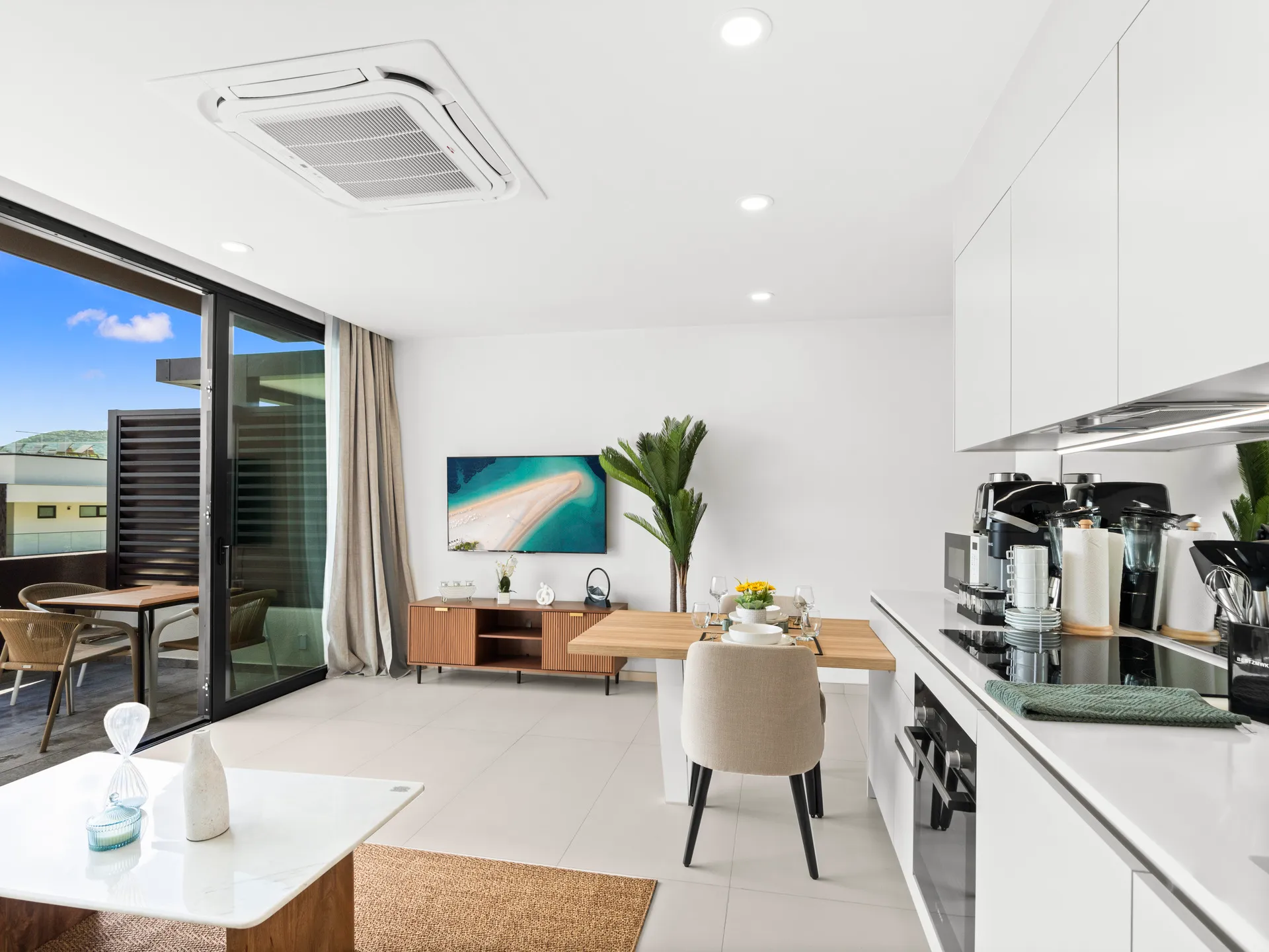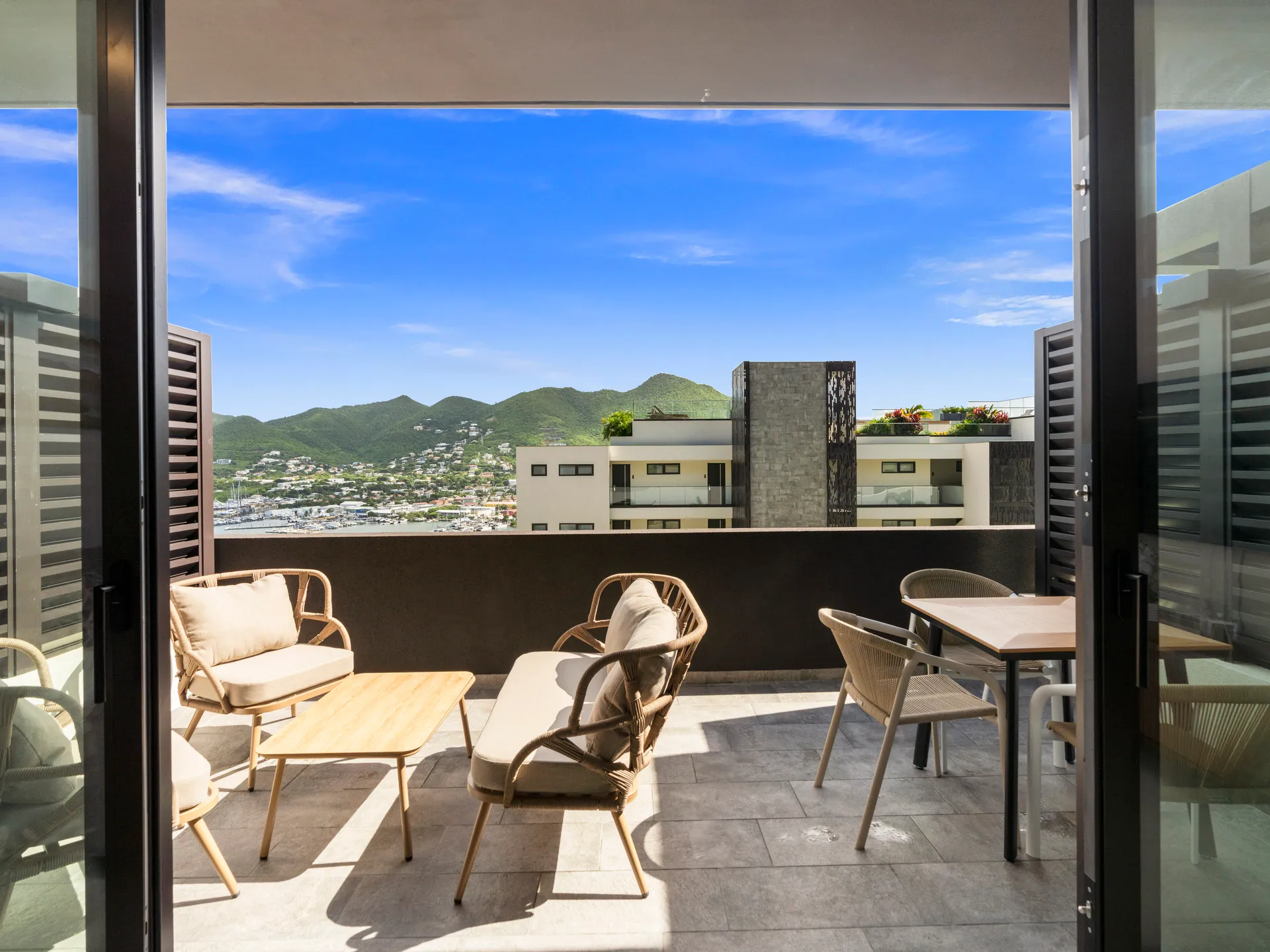 Balcon privé avec vue sur le lagon, parfait pour se détendre et profiter de la brise caribéenne