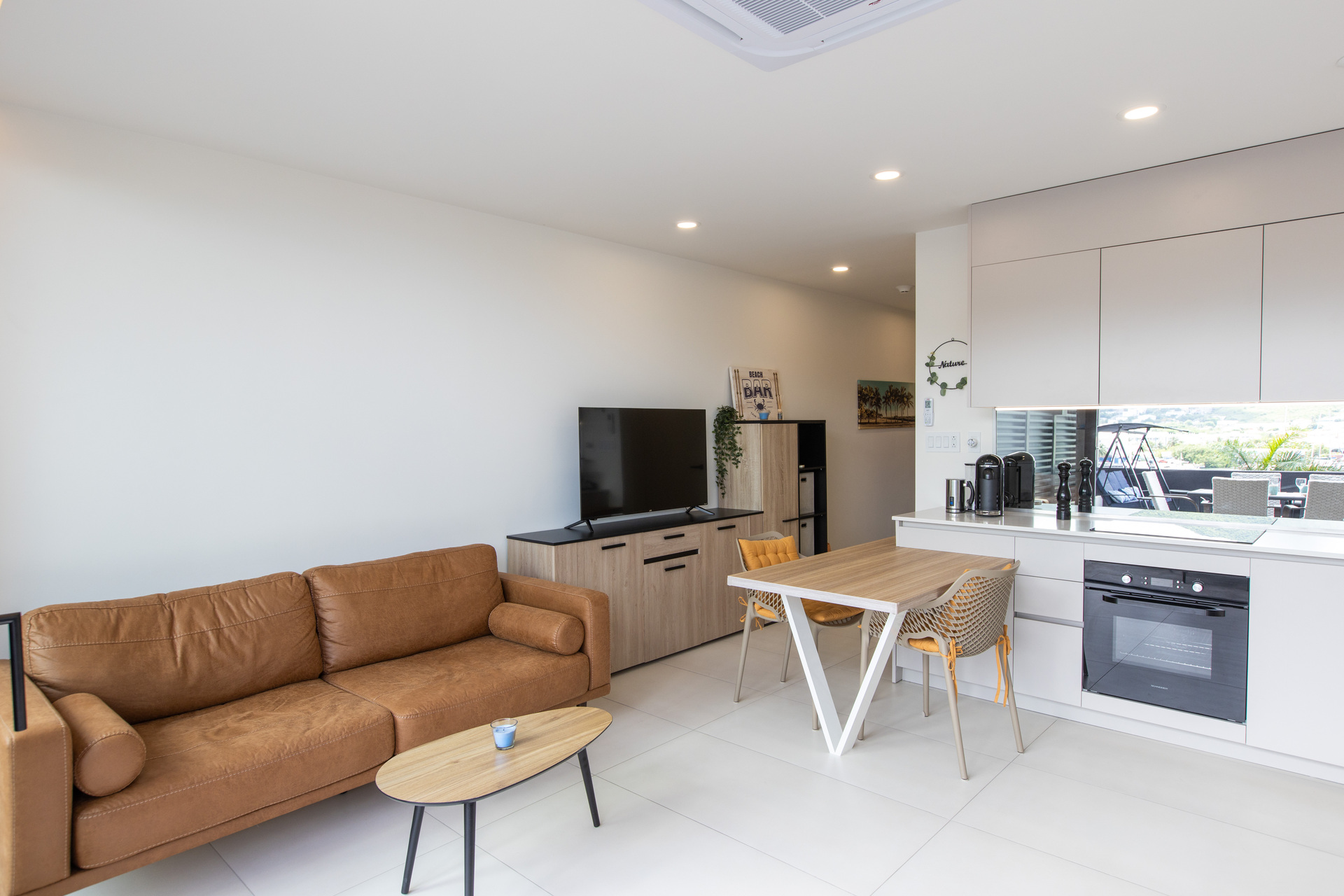 Relax in the warm and cozy living area, perfect for reading, watching a movie, or simply unwinding. Step outside to your private terrace, a peaceful outdoor space ideal for enjoying your morning coffee, sharing a meal, or soaking up the fresh air.