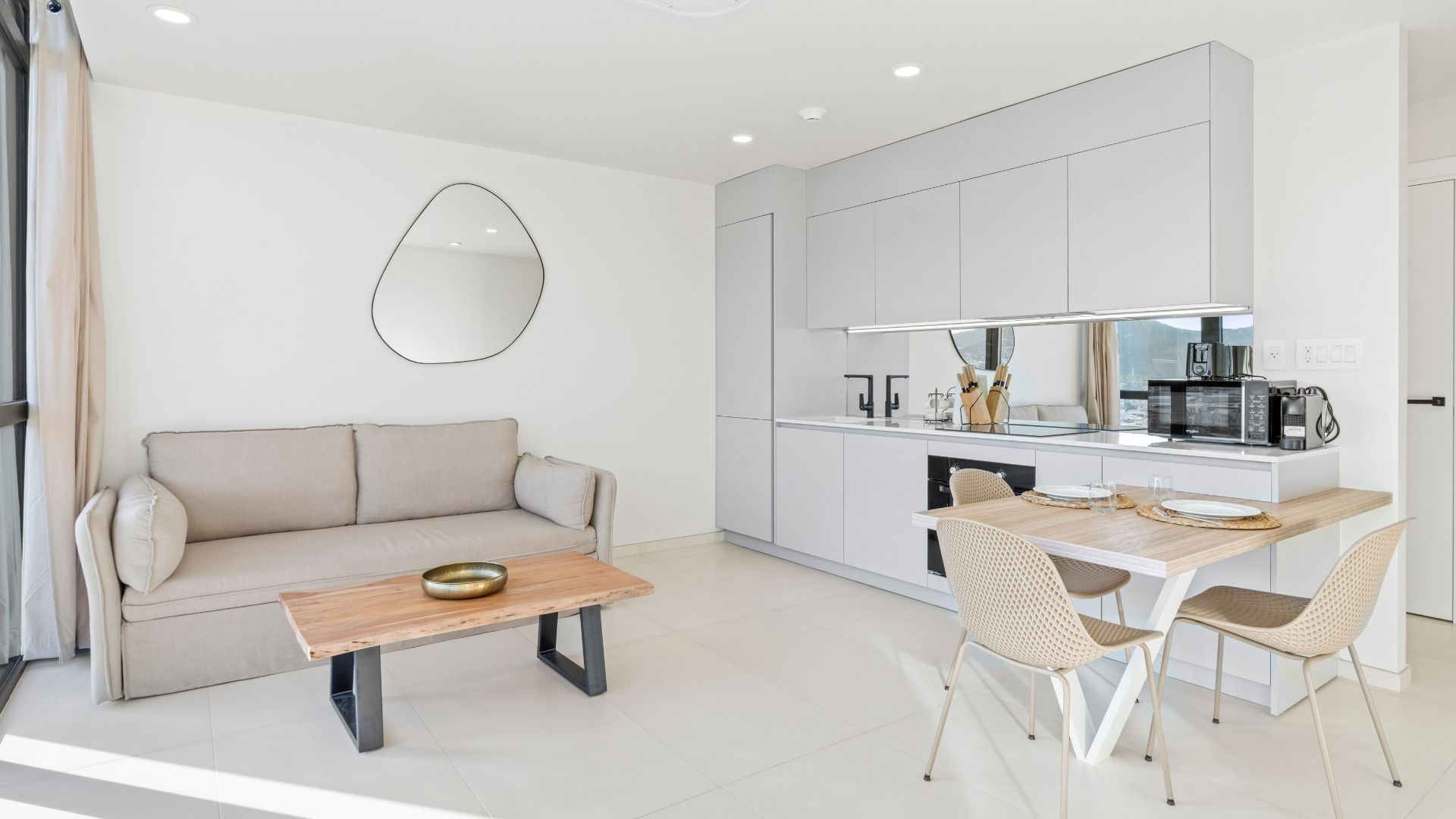 - High-End Features: Fully equipped modern kitchen with dishwasher, refrigerator, oven, stovetop, and Nespresso machine.