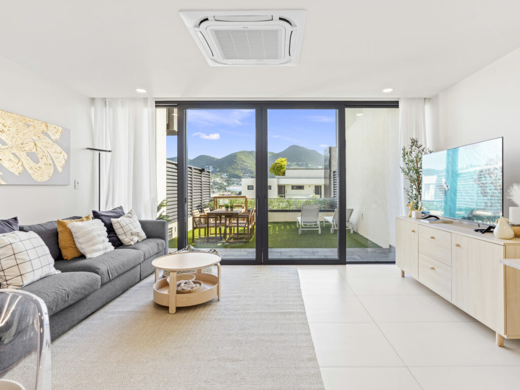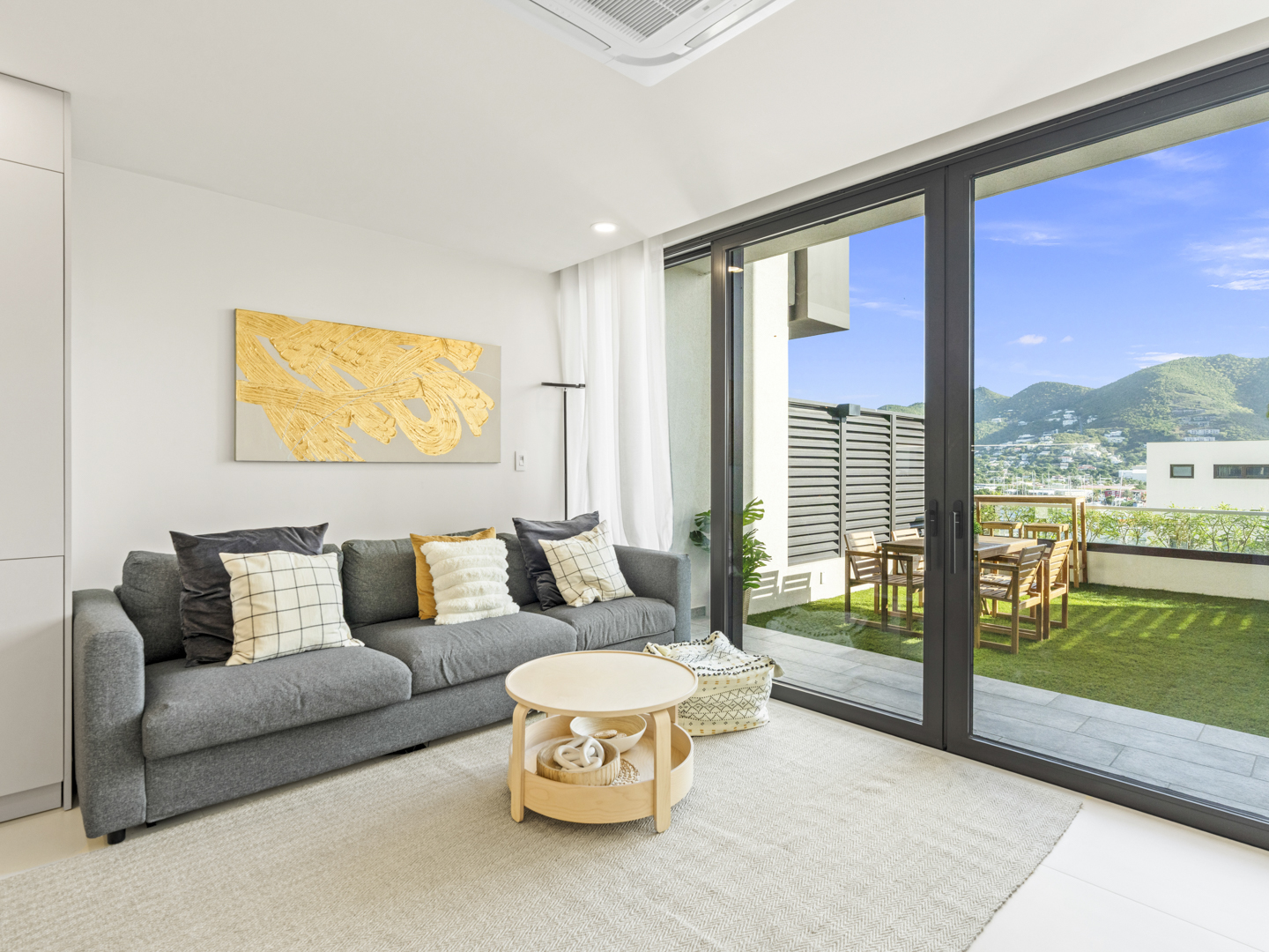 What truly sets B206 apart is its expansive outdoor terraceโthe largest in Building Two. Picture yourself unwinding on plush loungers, sipping a cocktail at the high-top bar, or enjoying a meal al fresco, all while soaking in views of the serene lagoon and surrounding hills. Itโs your private sanctuary for unforgettable sunsets and starlit evenings.