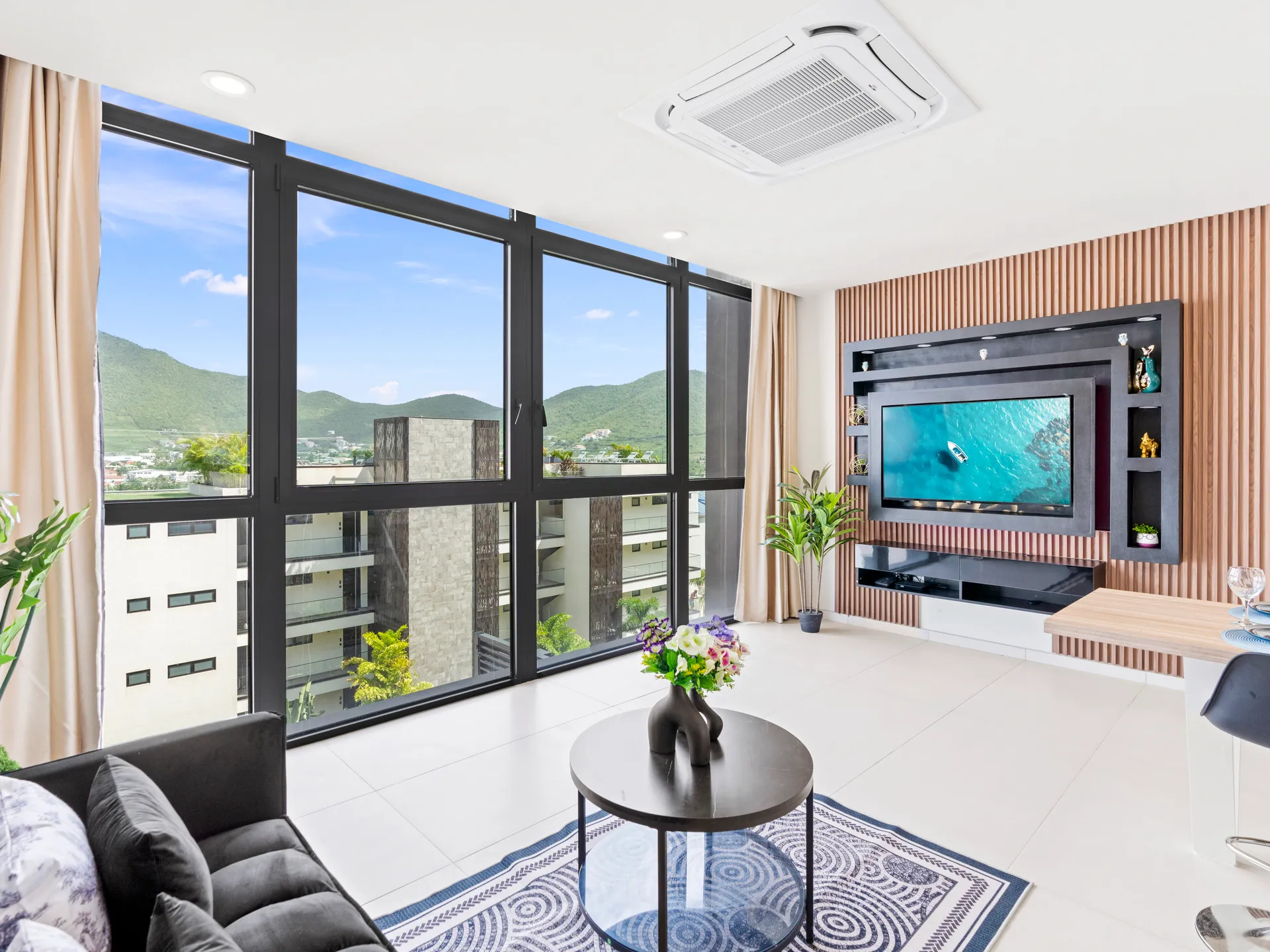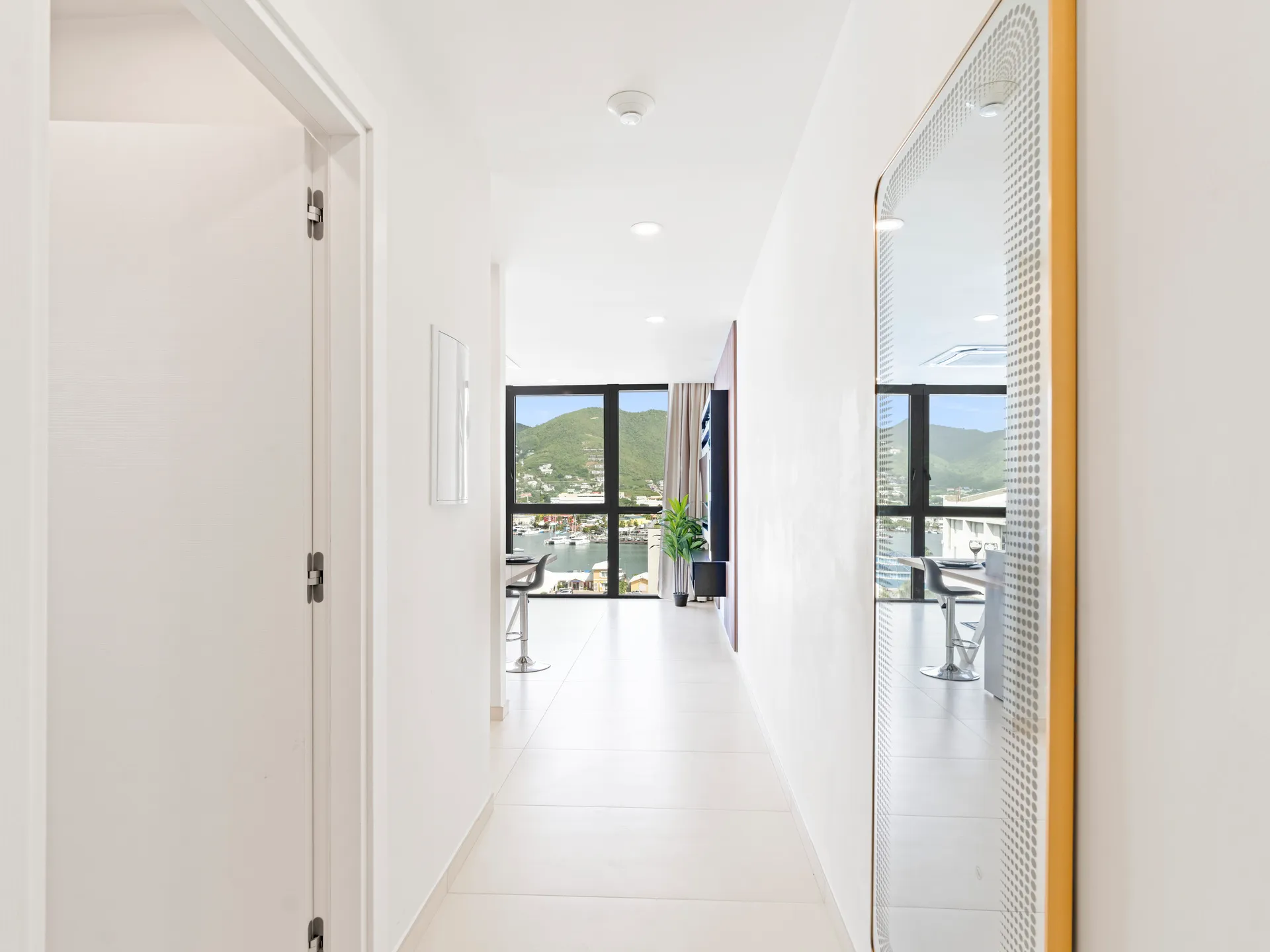 Combining panoramic lagoon views, high-end furnishings, and thoughtful amenities, this one-bedroom apartment at The Hills Residence offers a luxurious and convenient base for exploring Sint Maarten. Ideal for couples, small families, or travelers seeking both comfort and style.