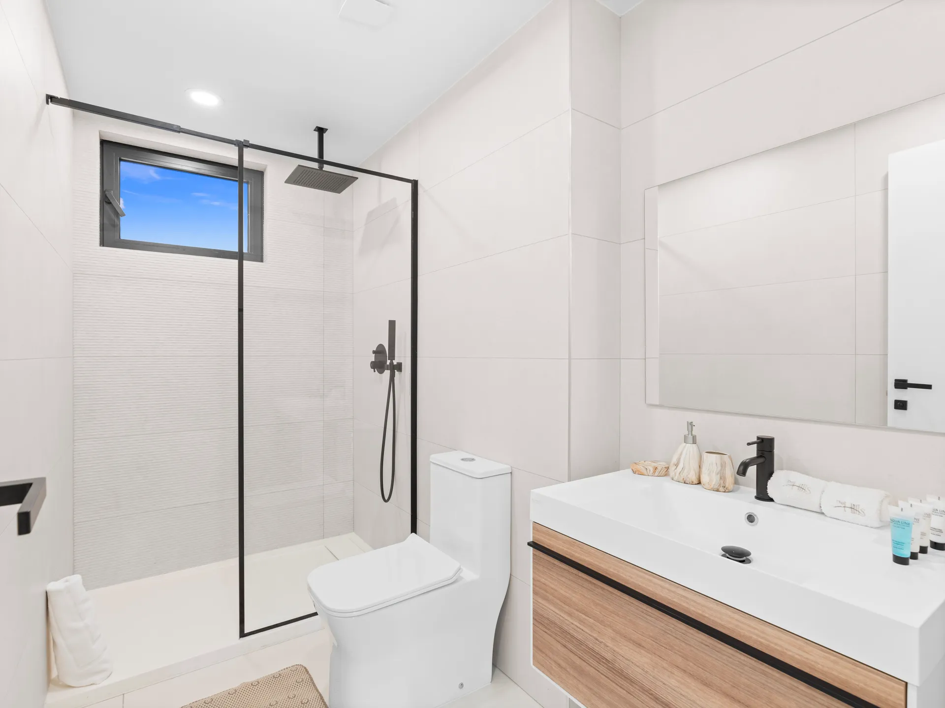 Modern bathroom with contemporary finishes and a refreshing shower.