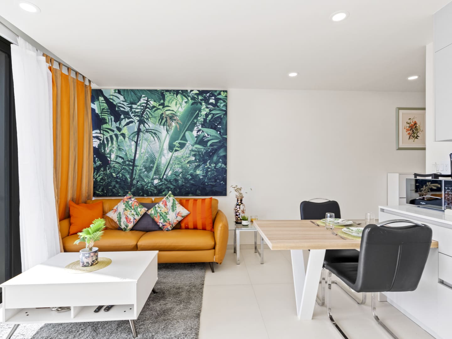 Dรจs votre arrivรฉe, vous vous sentirez immรฉdiatement chez vous dans le salon ร aire ouverte, dรฉcorรฉ avec goรปt et baignรฉ de lumiรจre naturelle. Le coin dรฉtente, confortable et chaleureux, est idรฉal pour se relaxer aprรจs une journรฉe dโexploration ร Simpson Bay, tandis que la cuisine entiรจrement รฉquipรฉe vous permet de prรฉparer aussi bien un petit-dรฉjeuner rapide quโun dรฎner convivial.
