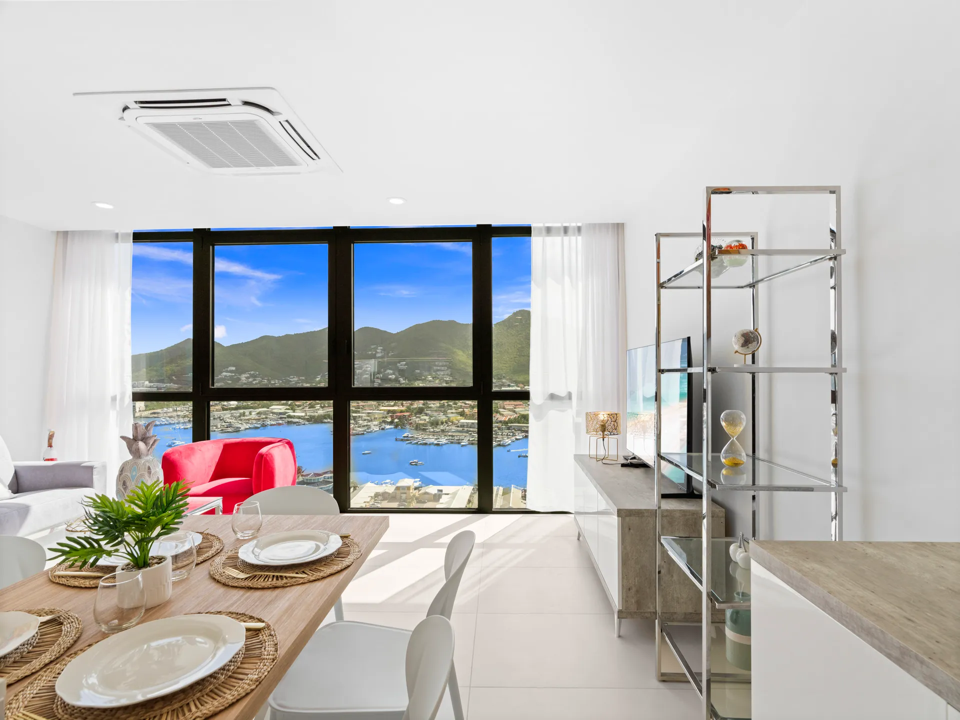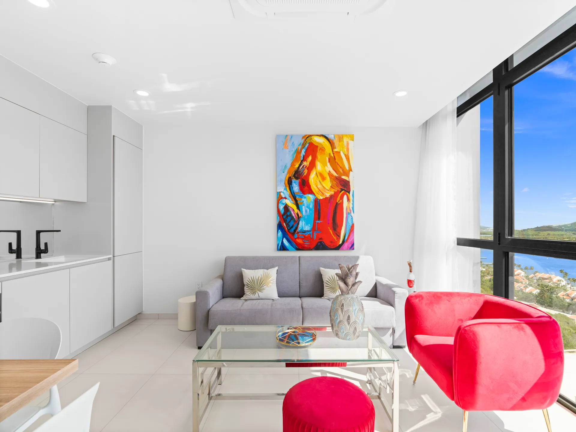 Perched on the top floor of Building 3, Apartment C-355 offers unparalleled luxury with sweeping views of the Simpson Bay Lagoon. This beautifully designed one-bedroom apartment combines modern sophistication with ultimate comfort, making it the perfect retreat for relaxation and rejuvenation.