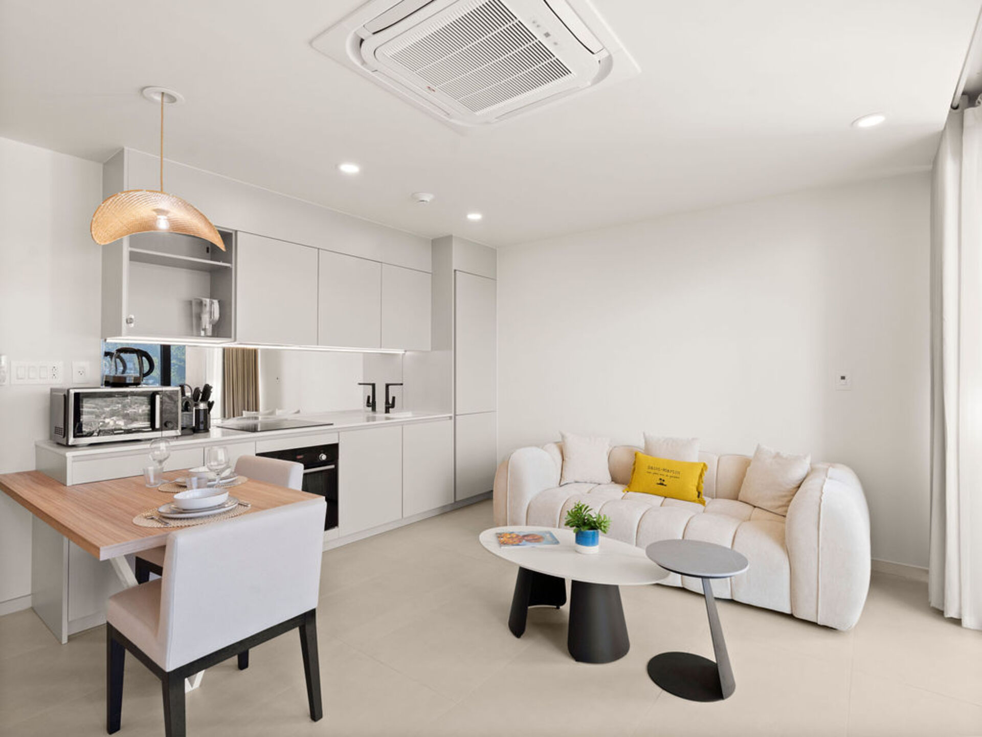 Located in Building 4, Apartment D-446 offers a charming one-bedroom space with a bright living area that opens onto a private balcony, perfect for enjoying lagoon views and a relaxing stay in Simpson Bay. Bright and thoughtfully arranged, it also features a modern bathroom and a fully equipped kitchen for convenient meal preparation.
