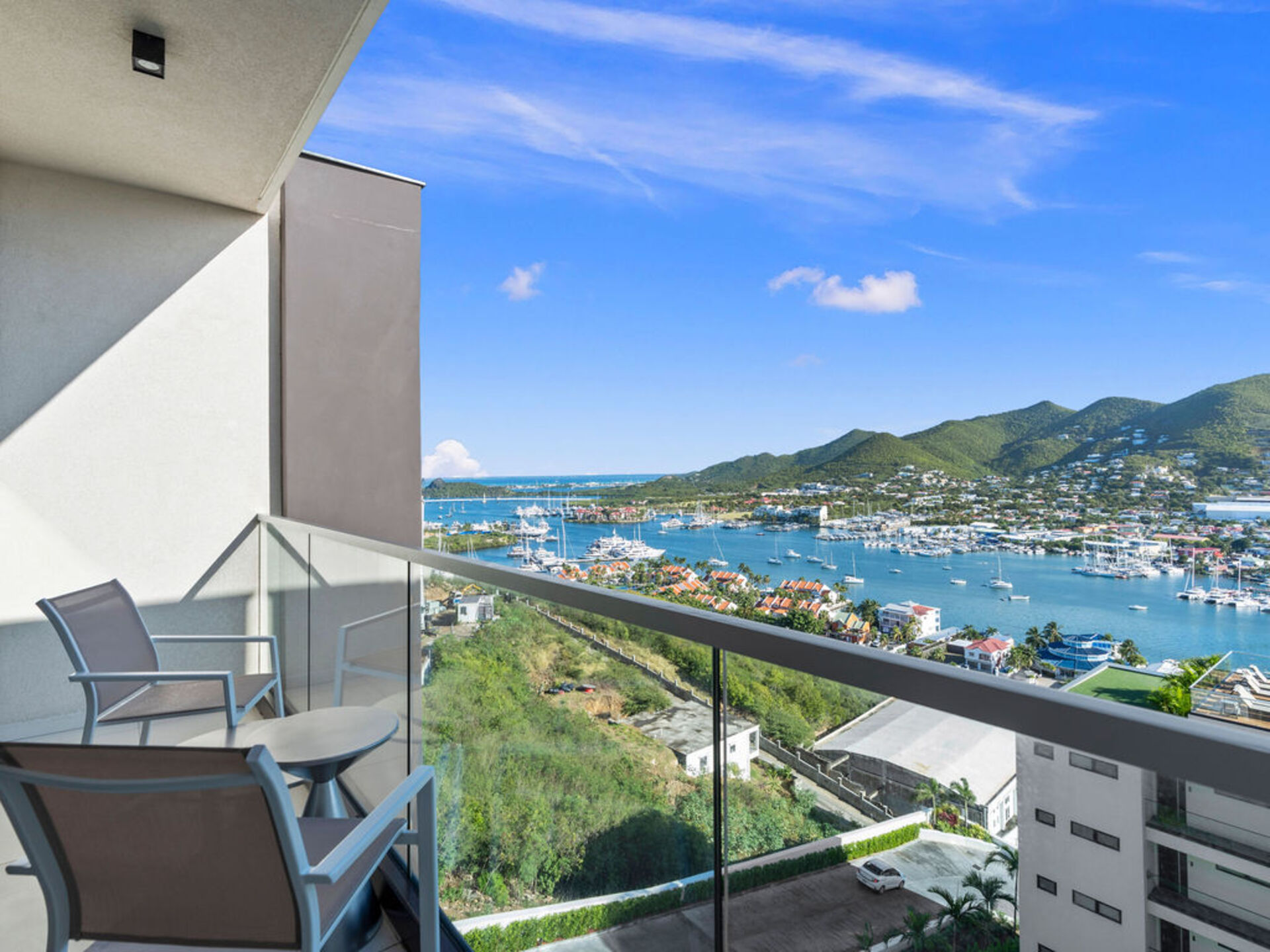 Private balcony accessible from the living area with lagoon views — perfect for relaxing and enjoying the Caribbean breeze