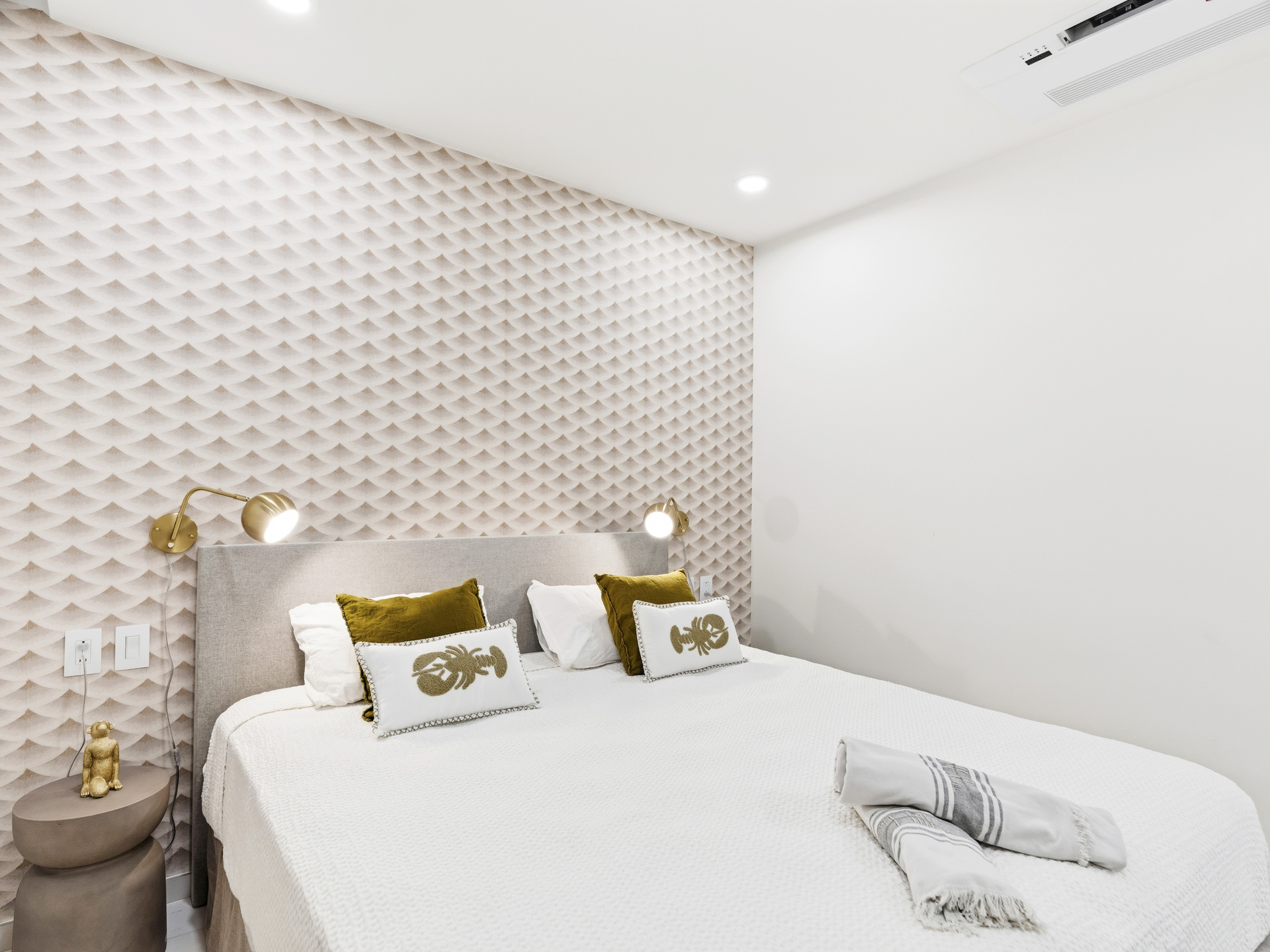 1-bedroom with plush, high-quality linens and stylish, comfortable furnishings