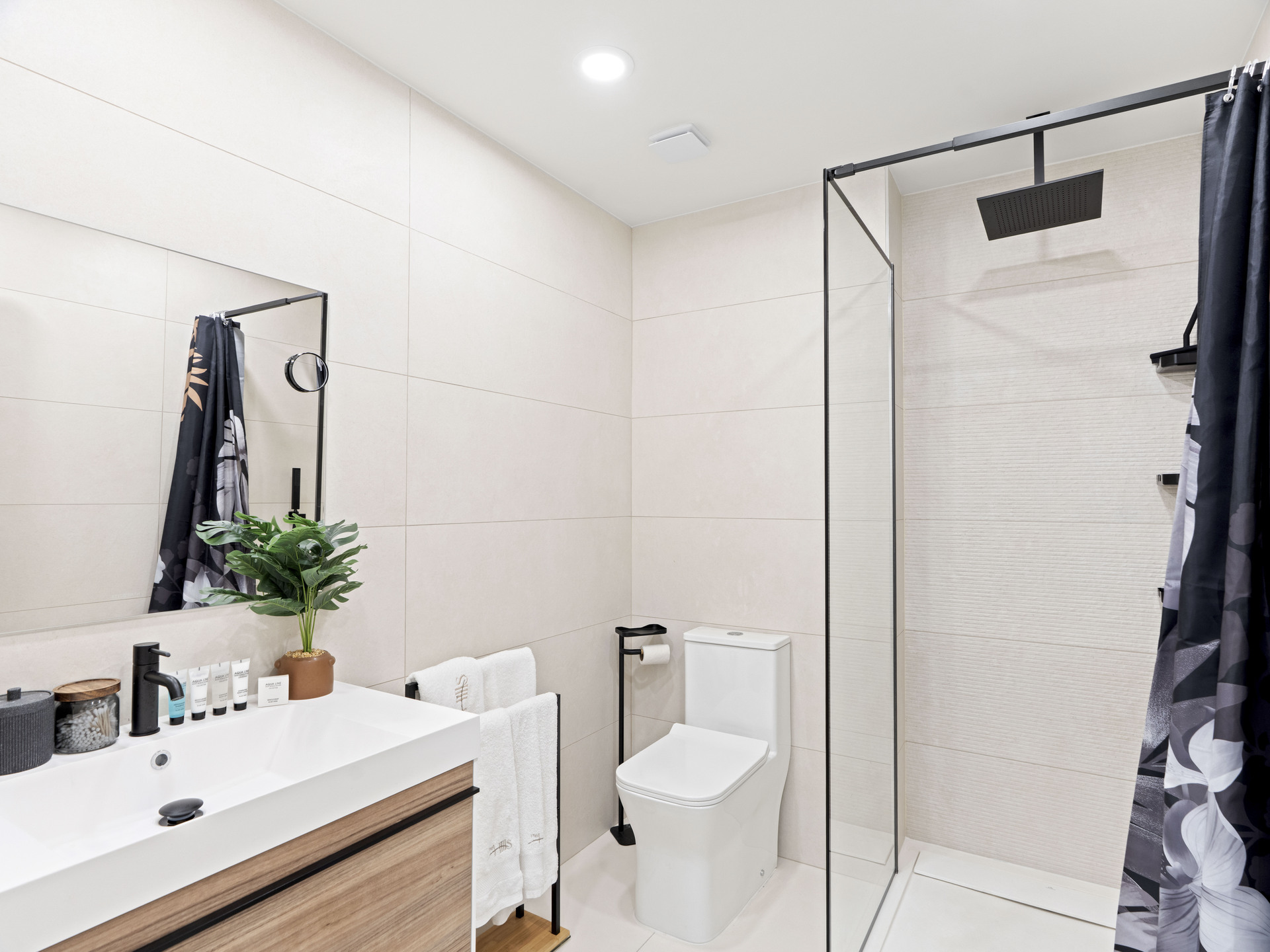Beautifully designed, fully equipped bathroom with modern fixtures and a walk-in shower