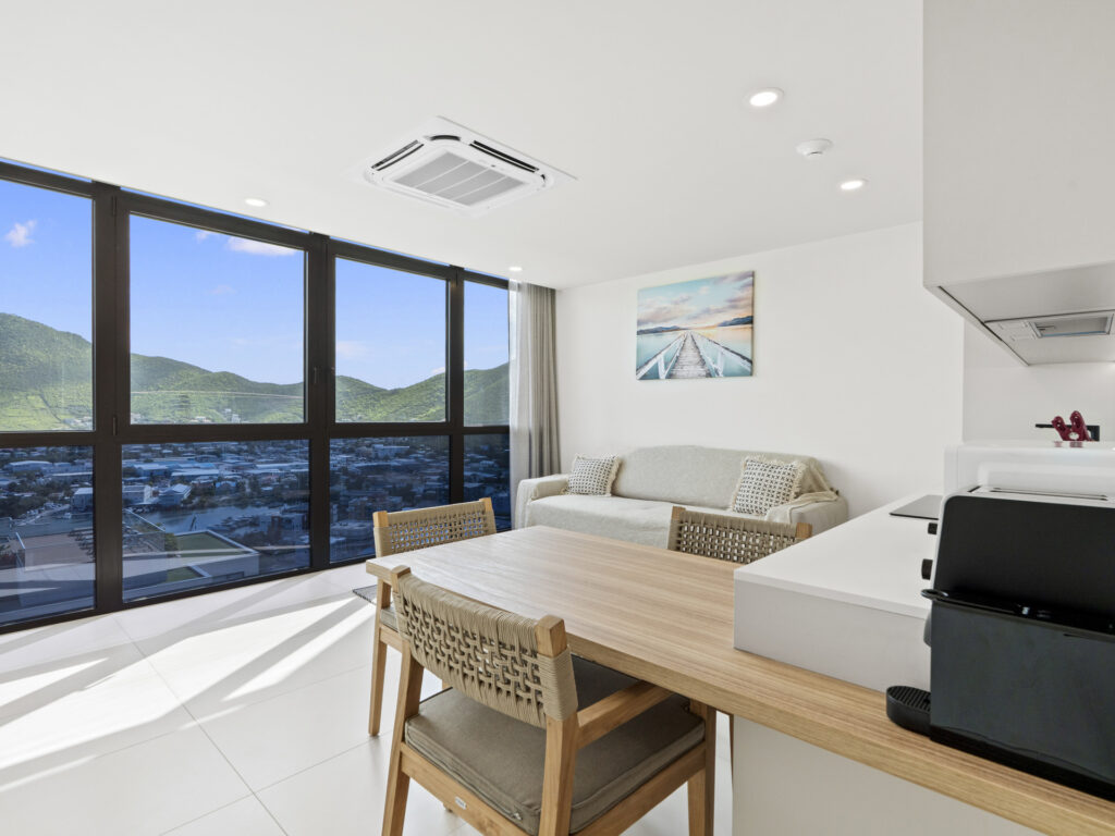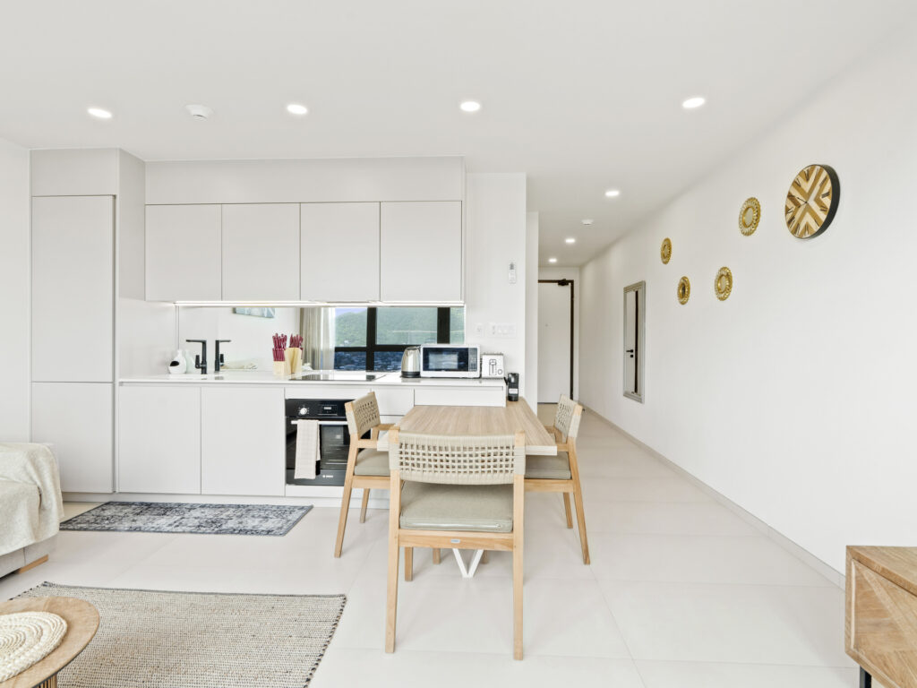Perched on the 3rd floor of Building 4, this sophisticated home offers spectacular views of the ocean, Anguilla, the lagoon, and the lush surrounding mountains, creating a serene and luxurious living experience.