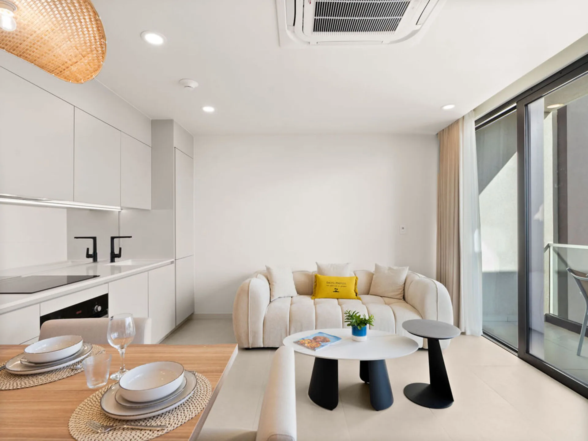 Located in Building 4, Apartment D-446 offers a charming one-bedroom space with a bright living area that opens onto a private balcony, perfect for enjoying lagoon views and a relaxing stay in Simpson Bay. Bright and thoughtfully arranged, it also features a modern bathroom and a fully equipped kitchen for convenient meal preparation.