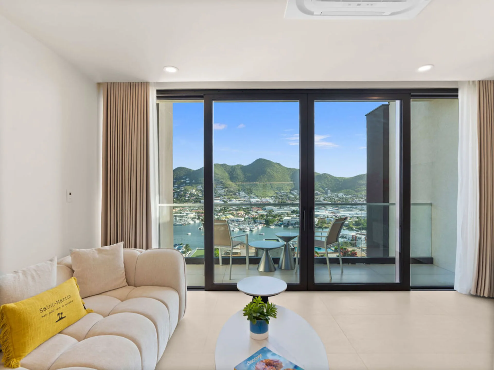 Located in Building 4, Apartment D-446 offers a charming one-bedroom space with a bright living area that opens onto a private balcony, perfect for enjoying lagoon views and a relaxing stay in Simpson Bay. Bright and thoughtfully arranged, it also features a modern bathroom and a fully equipped kitchen for convenient meal preparation.