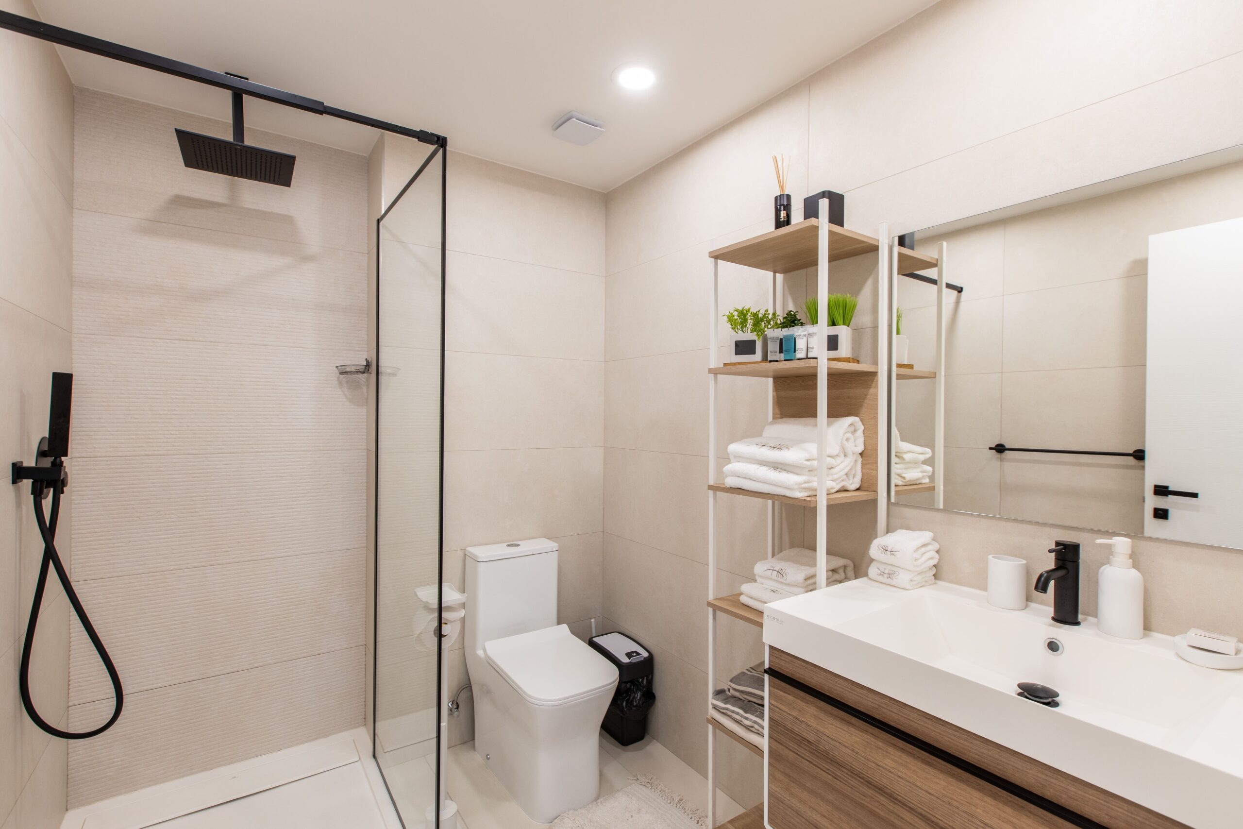 Modern Features: Equipped kitchen and bathroom with sleek, contemporary finishes.