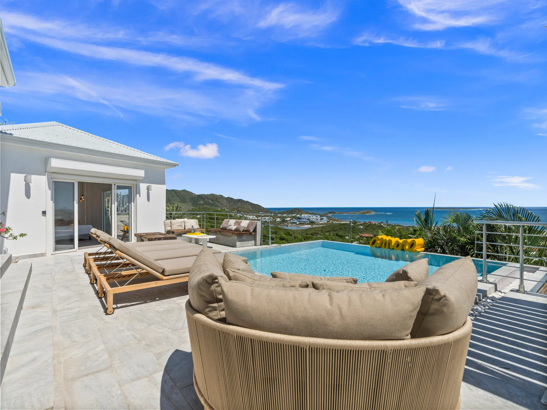 Perched atop a picturesque hill, Villa Topaze offers a unique vacation experience with breathtaking views of Orient Beach. This stunning 3-bedroom villa combines comfort, privacy, and high-end amenities for an unforgettable Caribbean stay.
